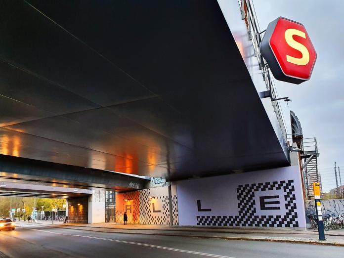 Udsmykning af viadukten under Vigerslev Allé station af Lise Nørholm